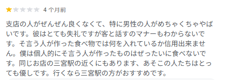 「三宮駅の分店は普通にいい人ばかり。どうして本店だけこんなにひどいのか理解できない。」(三宫站那家分店的员工都挺好,不懂为什么只有本店这么恶劣。)