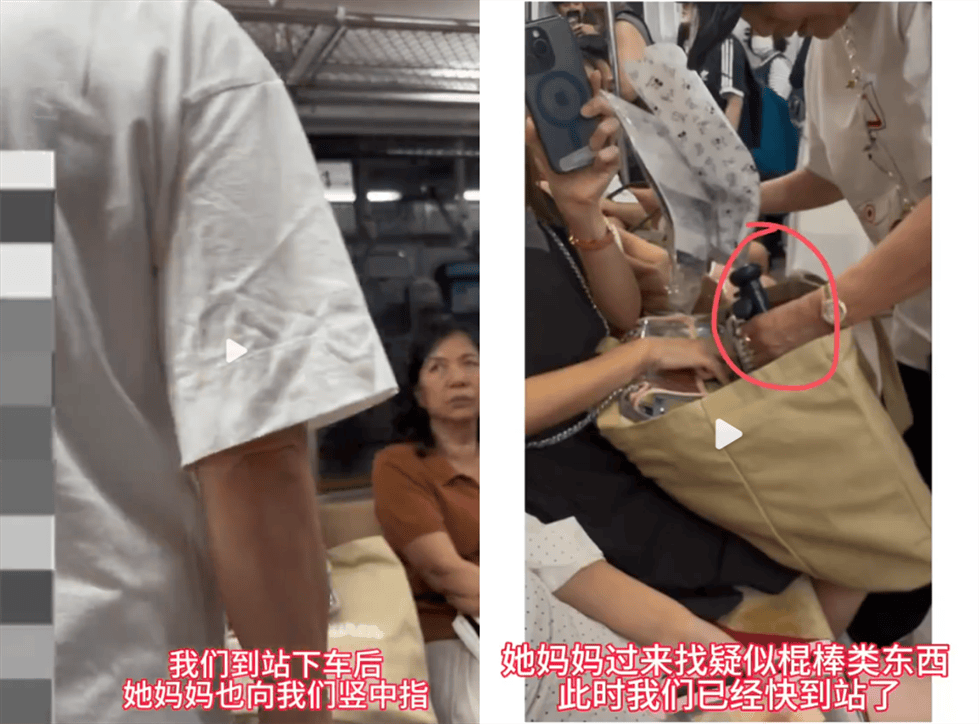 更戏剧化的是,对方的妈妈也加入战场,不仅骂人,还翻找类似棍棒的东西,差点要动手。要不是博主她们正好到站下车,后果不堪设想。