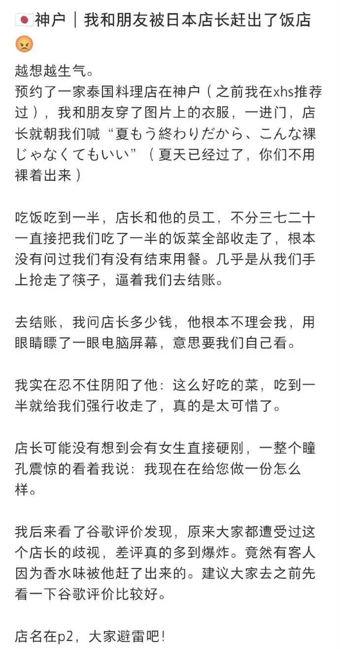 有人因为喷了点香水被赶走;有人说和日本朋友去,店长就特别殷勤,但一旦听到讲中文,立刻翻脸;还有人直说店长是“种族歧视者”。看完一圈评价,简直让人直呼离谱。