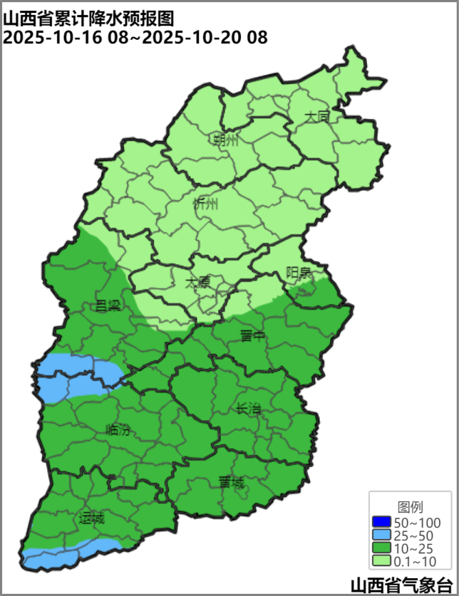 受冷空气影响, 预计10月16日—19日山西省将出现降水、降温、霜冻天气过程。