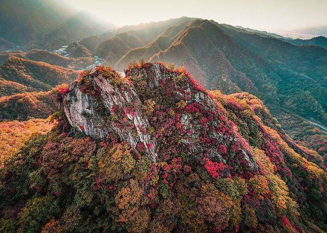 站在南天门远眺,黄、红、绿交织漫山,勾勒出绝美的天际线。连绵的红叶如同大地的红毯,一直延伸到视线尽头。