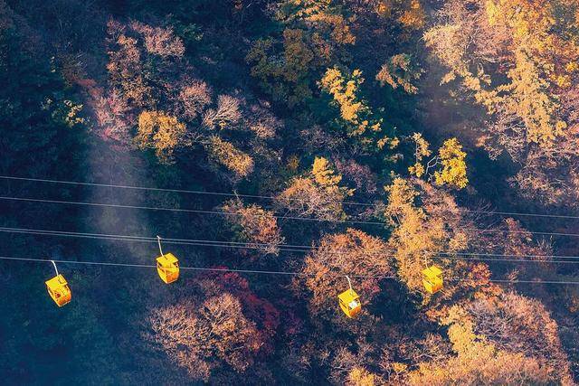 行走在山林峡谷间,红叶与蓝天交相辉映,远比春花更妖娆。乘坐凤凰岭索道,仰观云海仙境,俯瞰山林间,红、黄、绿肆意泼洒,将绝美风景尽收眼底。