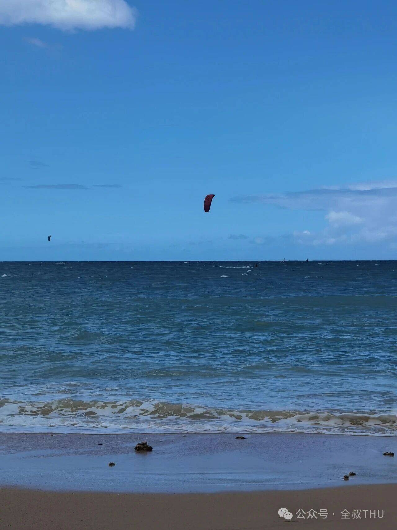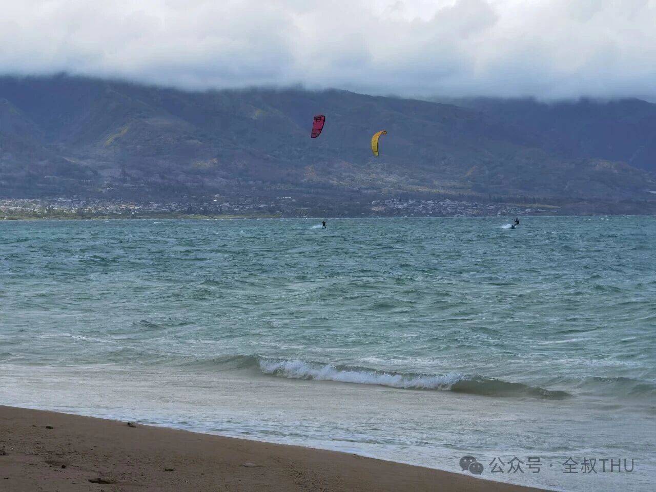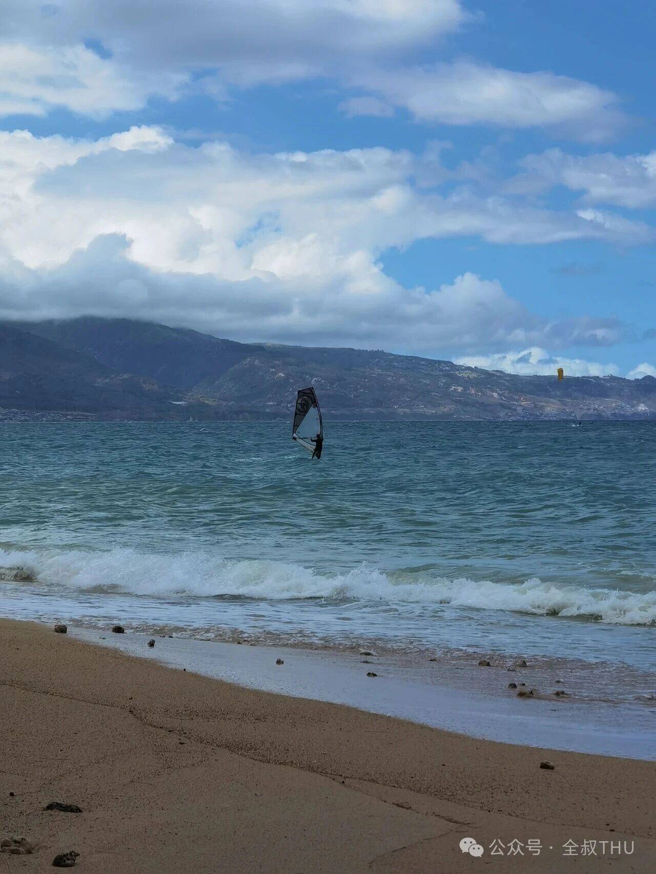 风浪大到冲破了我们面前的高坡,不过眼前一片繁忙景象。有拿着冲浪板冲浪的,有顶着风玩帆船的,还有挂上翼伞蹬着板冲浪的,还有划着波利尼西亚式双体独木舟出海的。时代都有各自的浪潮,在变化越来越急速的年代,有很多人和事被时代的浪潮拍下去,也有更多的弄潮儿敢于勇立潮头。