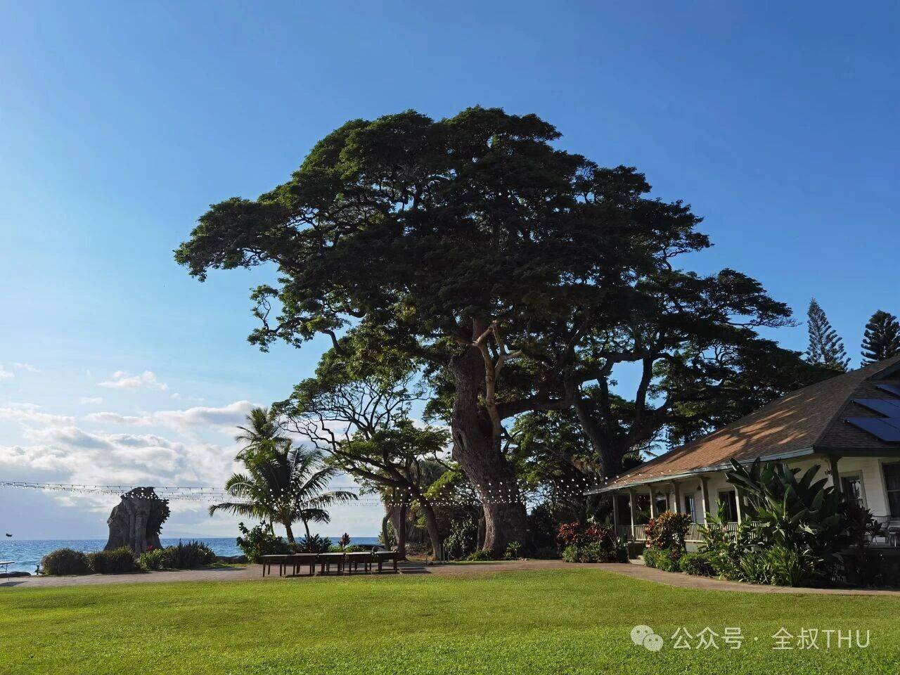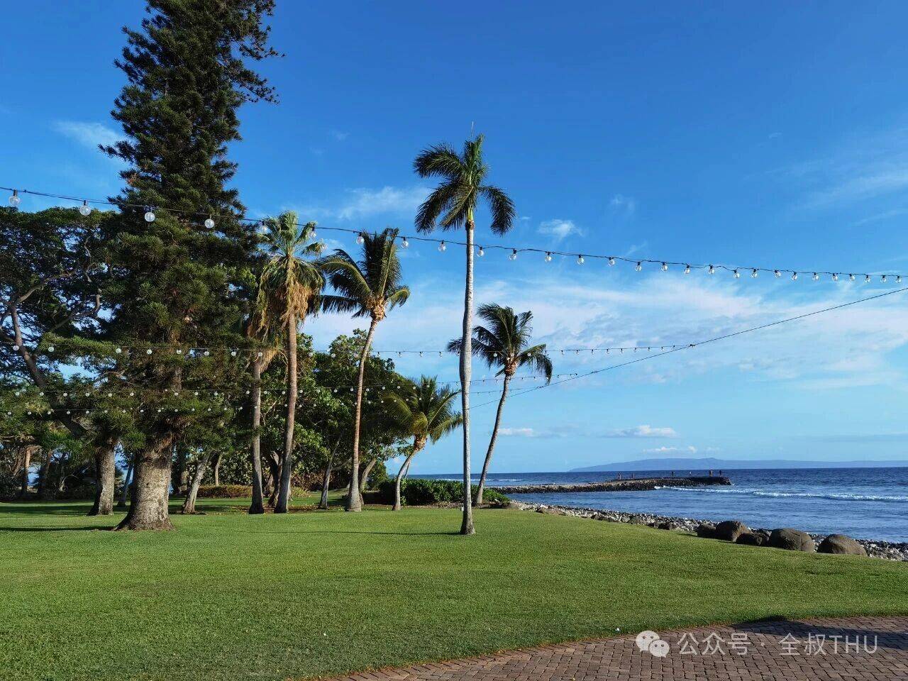 再转到将要举办五周年婚誓更新活动的Olowalu Plantation农庄活动场地,正好快要赶上下午近傍晚,斜阳余晖抹在树木上,映衬蓝天碧海,风景显得格外优美,画面可以随手撷取。