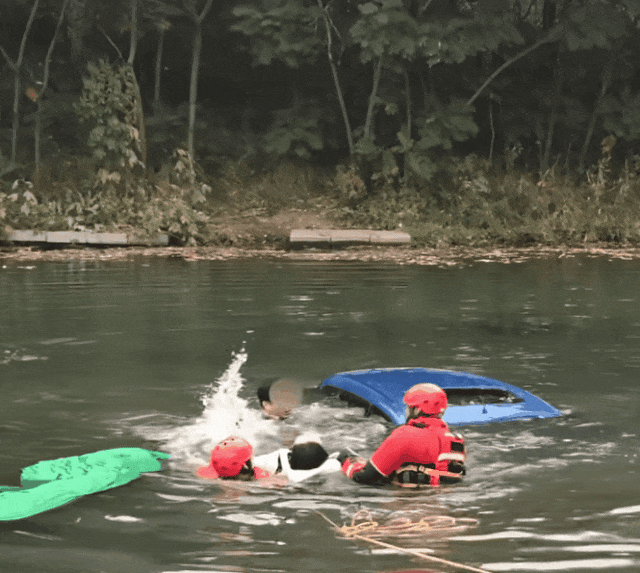 2023年3月,北京密云,两辆越野车开到潮河边,不料车辆滑入河内,瞬间被湍急的河水淹没大半,导致车内三人被困。所幸消防员及时赶到,三人全部安全上岸。