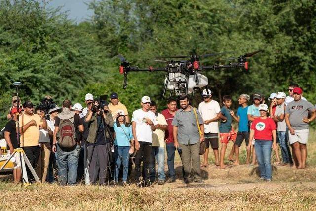 极飞农业无人飞机进行田间示范作业 图片来源 极飞科技官网
