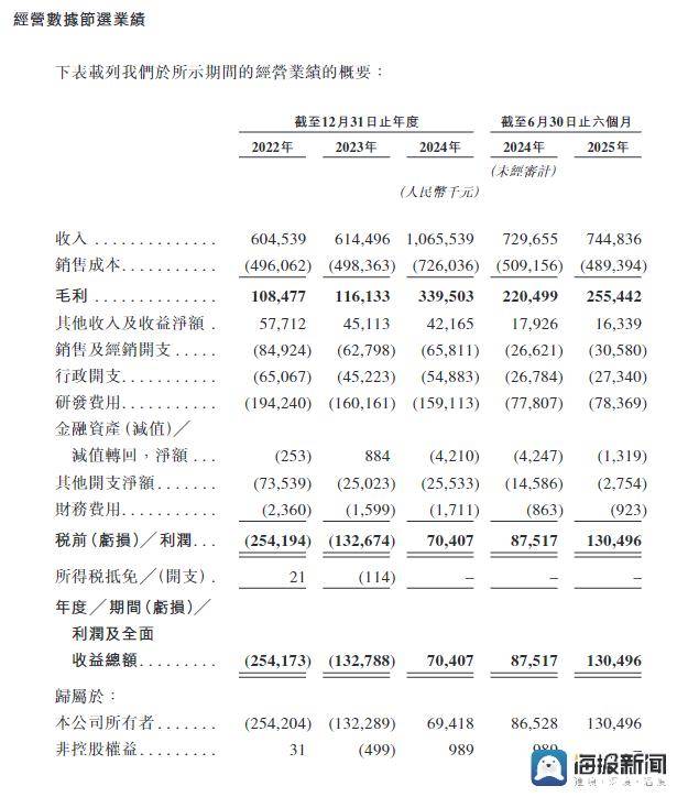 从招股书披露的核心数据看,极飞科技的财务数据也成为其二次闯关的底气。数据显示,公司营收从2022年的6.05亿元稳步增长至2024年的10.66亿元,2025年上半年更是以7.45亿元营收实现1.30亿元净利润,较2024年全年0.70亿元净利大幅增长85.7%。