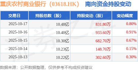 证券之星消息,10月17日南向资金增持831.8万股重庆农村商业银行(03618.HK)。近5个交易日中,获南向资金增持的有5天,累计净增持2899.4万股。近20个交易日中,获南向资金增持的有15天,累计净增持6430.83万股。截至目前,南向资金持有重庆农村商业银行(03618.HK)10.48亿股,占公司已发行普通股的41.68%。