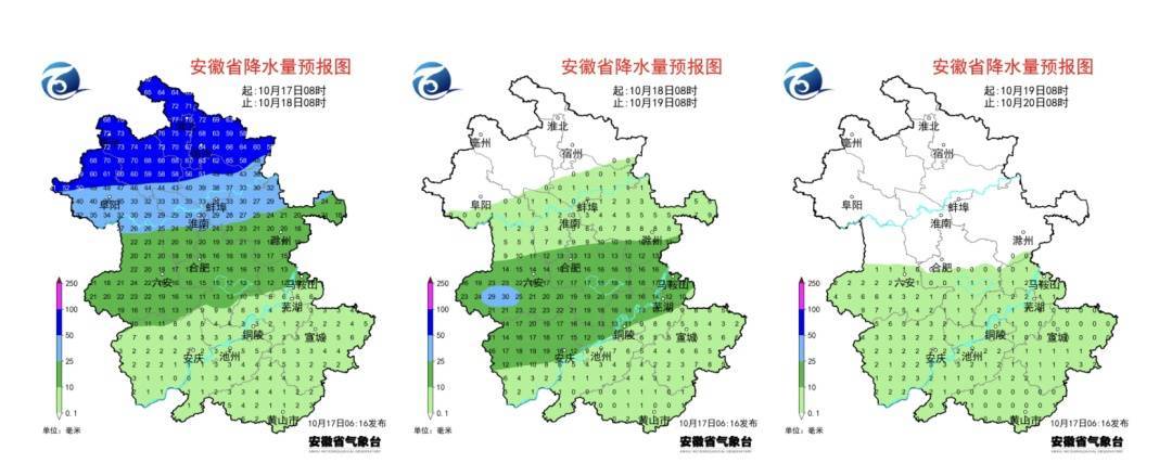 17日(周五):沿淮淮河以北阴天转多云有大雨,部分地区暴雨;江淮之间阴天有小到中雨;沿江江南多云转阴天有阵雨或雷雨。