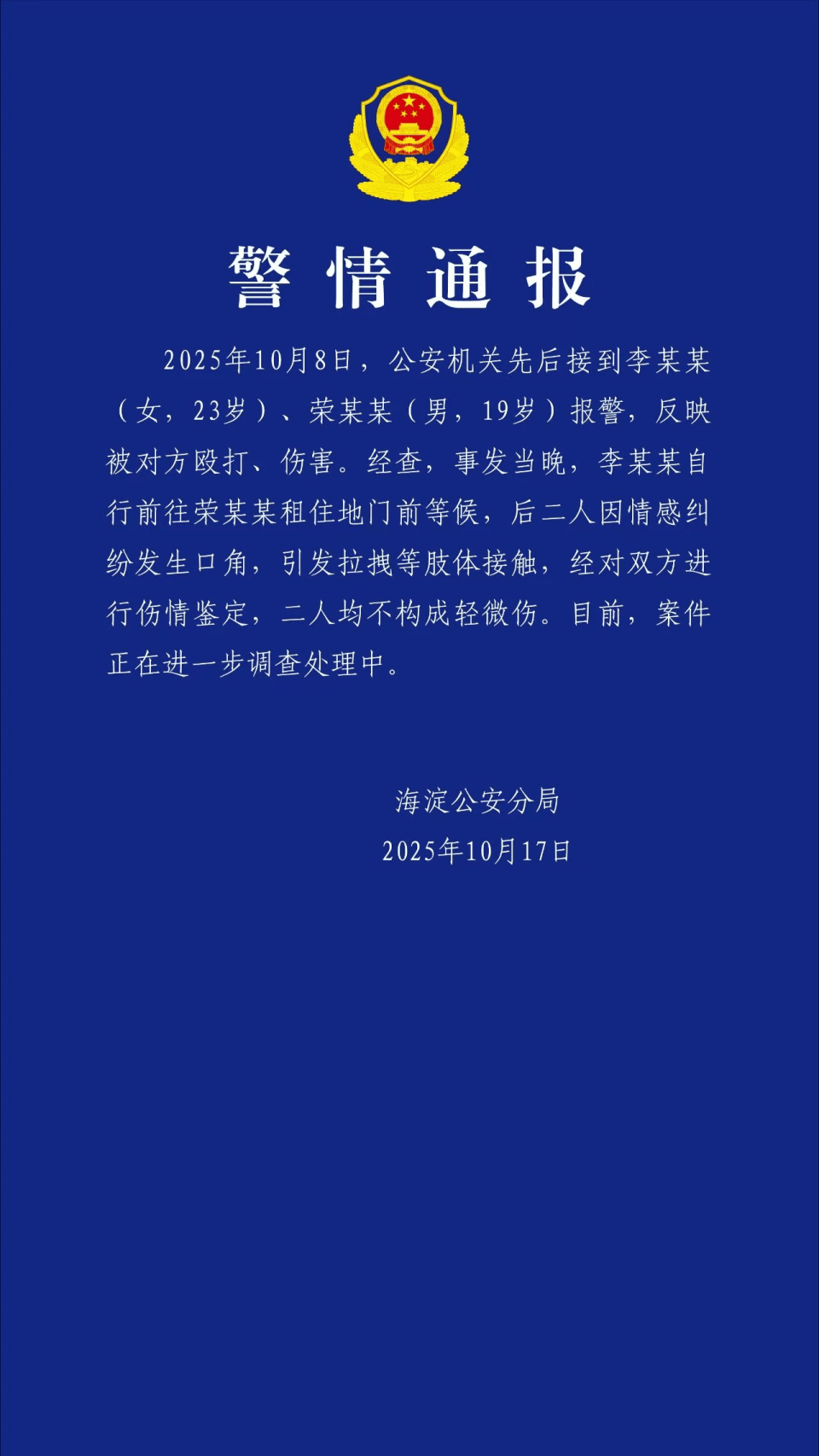 近日,演员荣梓杉被曝出轨、打人引发舆论关注。10月16日,演员李禹熹发长文指控荣梓杉出轨,并公开了报警记录和诊断证明书。10月16日,荣梓杉的工作室发声明称荣梓杉与李某某从未建立恋爱关系,工作室已启动法律程序并晒出报案回执。目前他就读于中央戏剧学院,针对学生陷入此类道德争议,10月17日,潇湘晨报致电中央戏剧学院,校方表示,如果情况属实,会有相关处置。