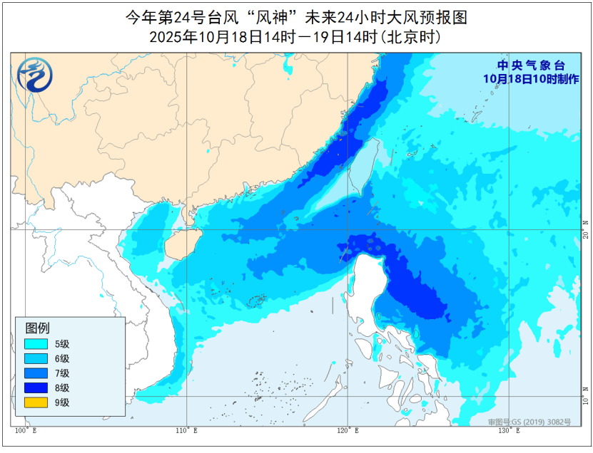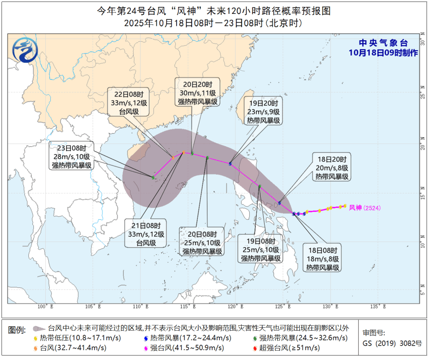 19日白天将在菲律宾吕宋岛东部沿海登陆
