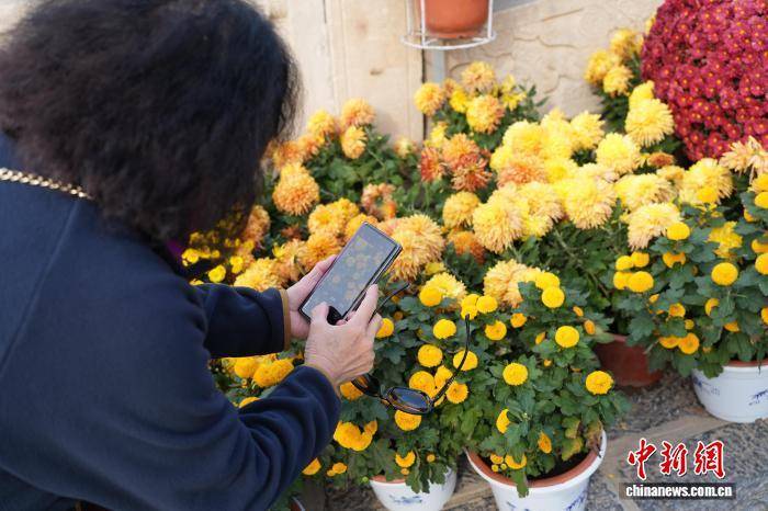 图为游客用手机拍摄展出的菊花。中新社记者 刘鹏 摄