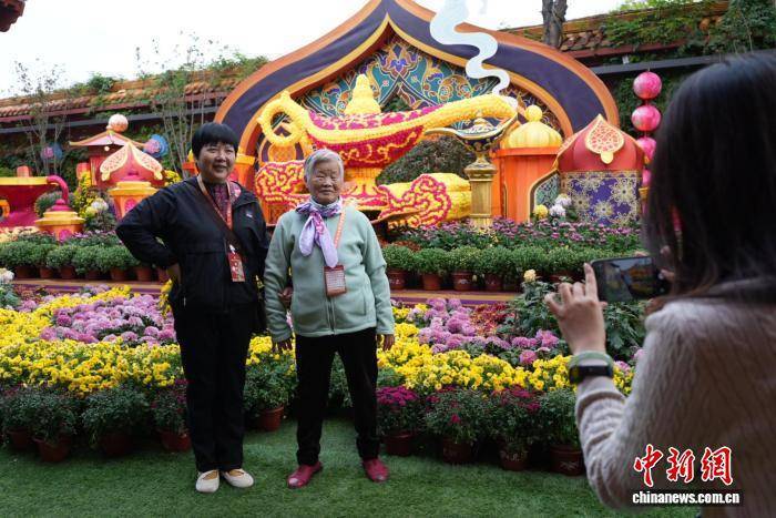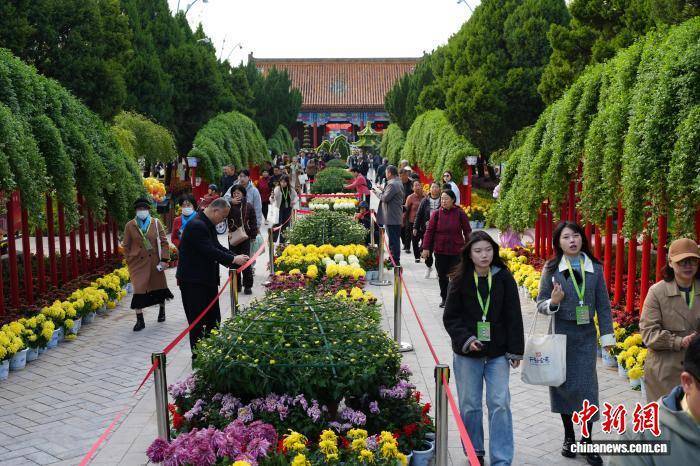 图为开封龙亭景区菊花展吸引游客观赏。中新社记者 刘鹏 摄