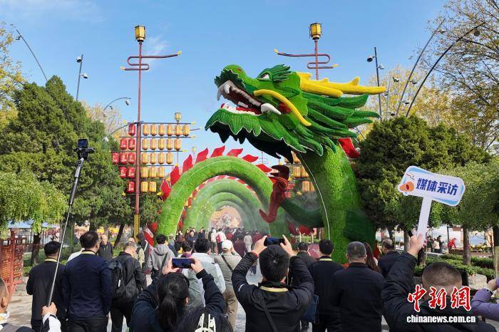 图为开封龙亭景区菊花展吸引游客拍照“打卡”。王士豪 摄