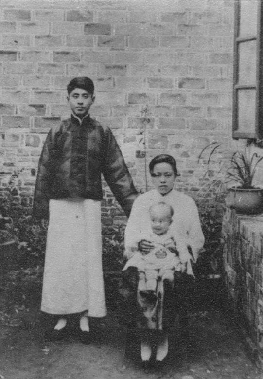 1923年杨振宁十个月大时与父母亲于合肥四古巷故居窗外。图片来源:清华大学