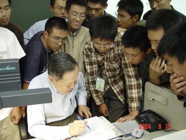 2004年秋杨振宁与清华大学物理系大一新生在课间交流 (图片来源:清华大学)