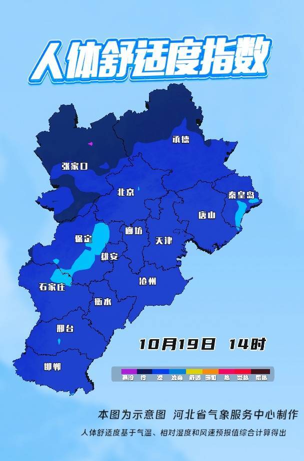 河北省气象台2025年10月18日10时48分继续发布寒潮蓝色预警信号:受冷空气影响,17-18日全省气温明显下降,较16日早晨,石家庄、沧州及以北地区最低气温已下降5~8℃,其中张家口、承德、保定西北部下降8~12℃,局地14℃以上;其他地区下降2~4℃。预计19日早晨,张家口北部、邢台、邯郸最低气温继续下降2~5℃,保定、廊坊以北地区有霜冻。请注意防范。