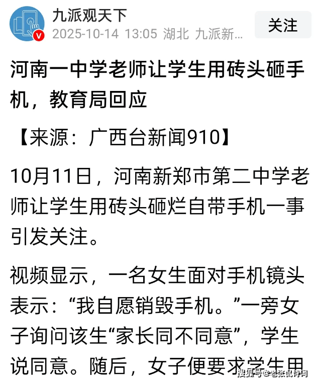 这老师太傻了!河南一老师让学生用砖头砸手机,后果其实很严重!