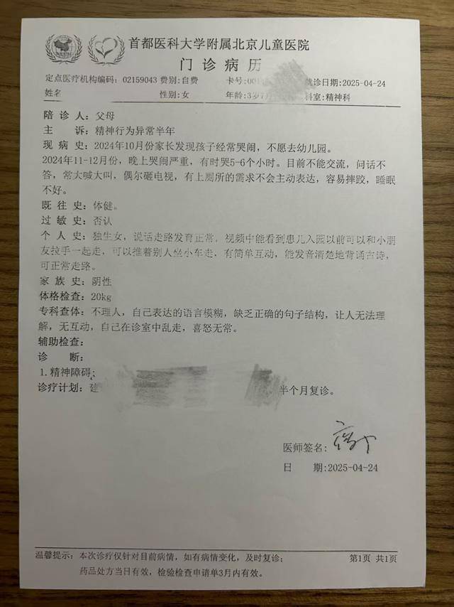 孟先生夫妇并不甘心。称自孩子出事以来,二人带其多次前往医院诊疗,根据他提供的一份首都医科大学附属北京儿童医院的门诊病历,诊断结果显示孩子