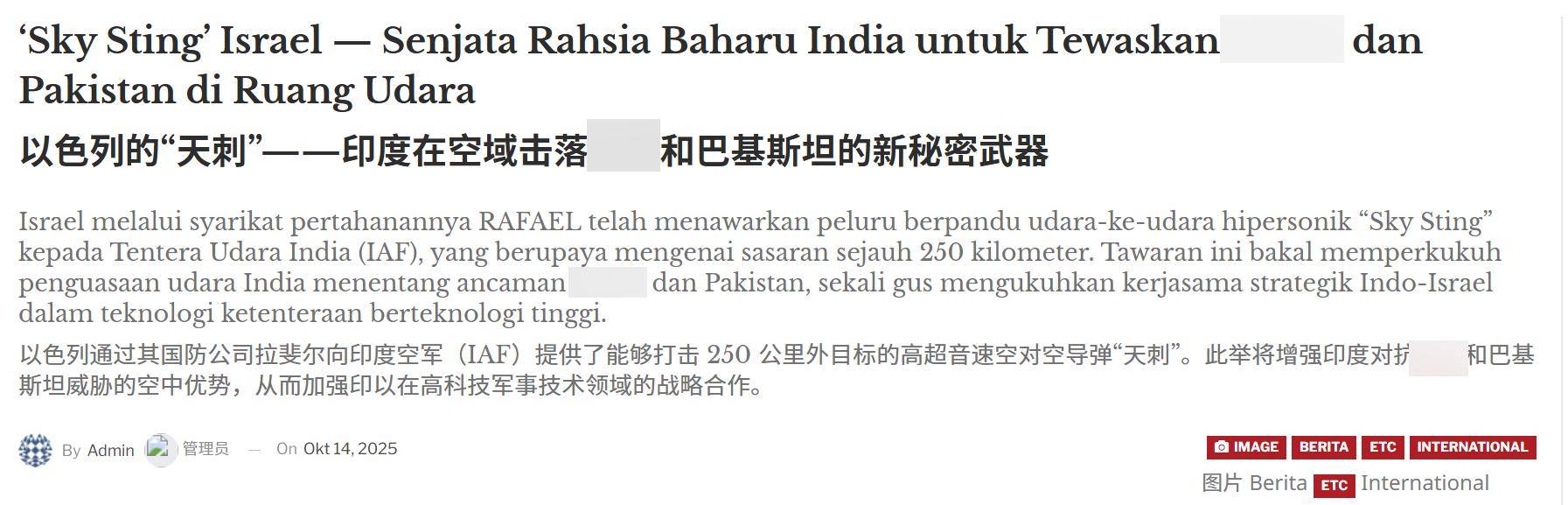 以色列要支持印度先进空空导弹(《亚洲防务安全》报道截图)