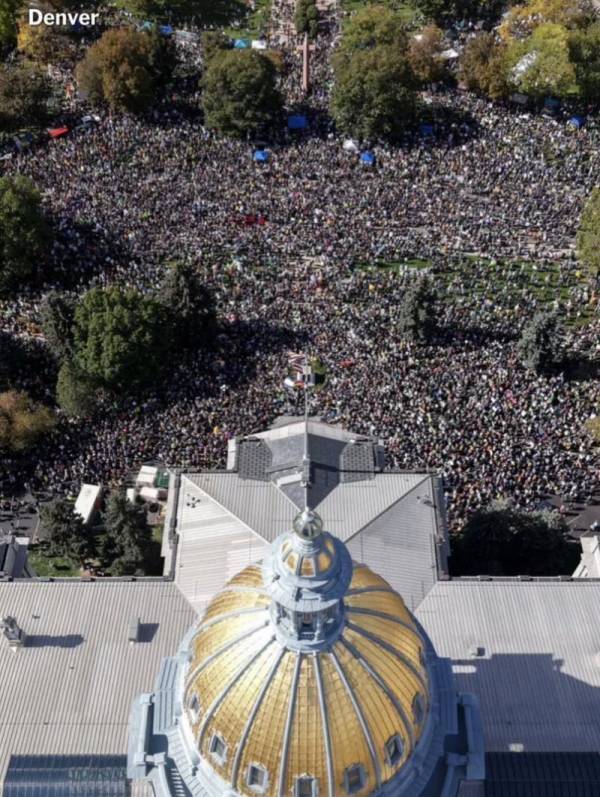 当地时间10月18日,科罗拉多州丹佛市反特朗普集会现场。社交媒体