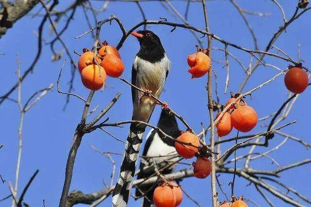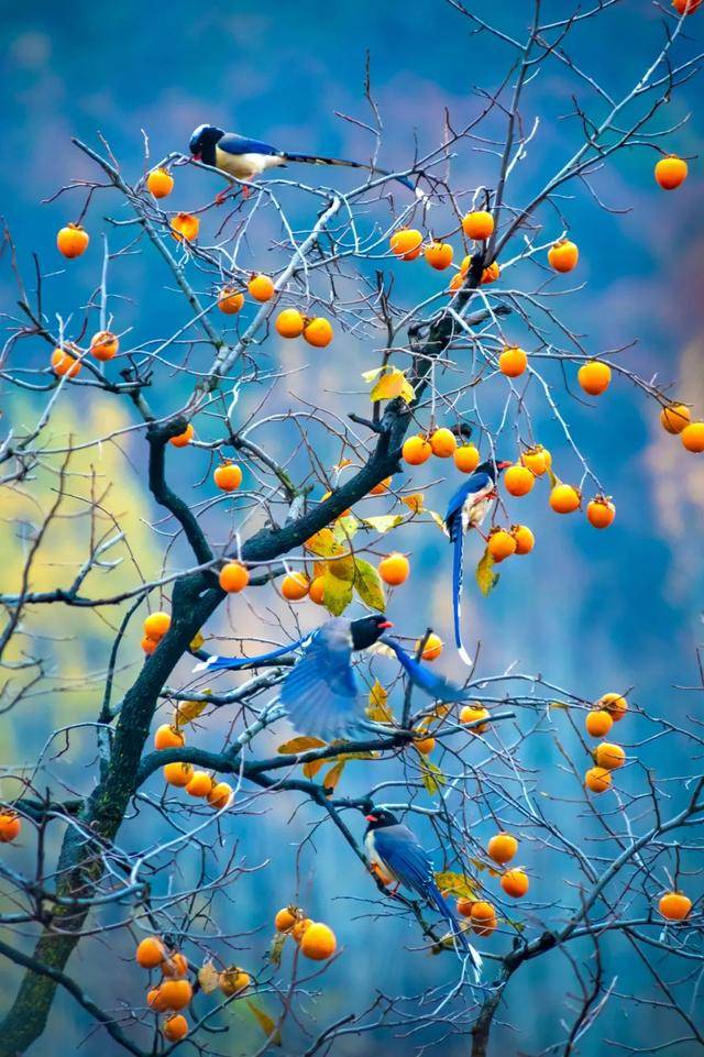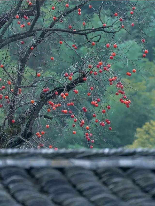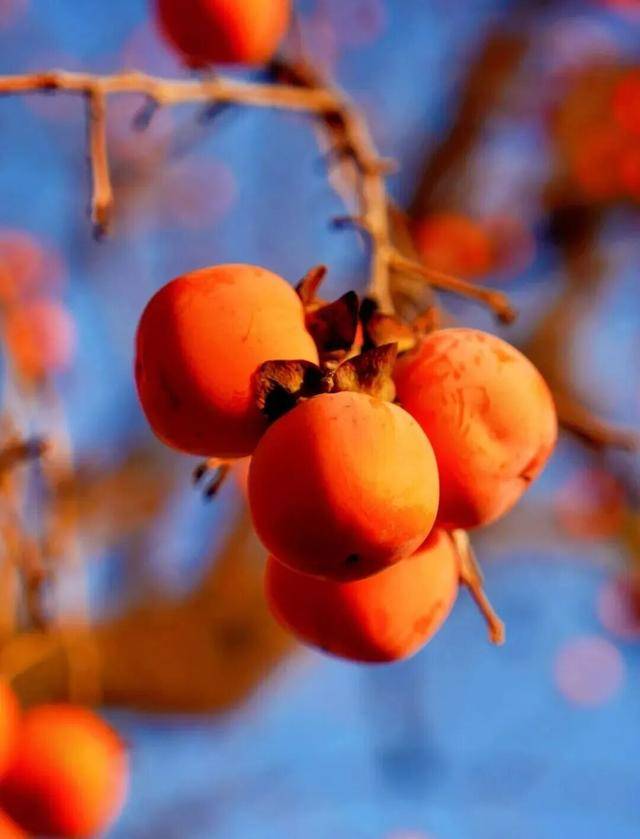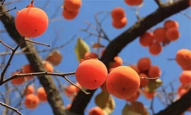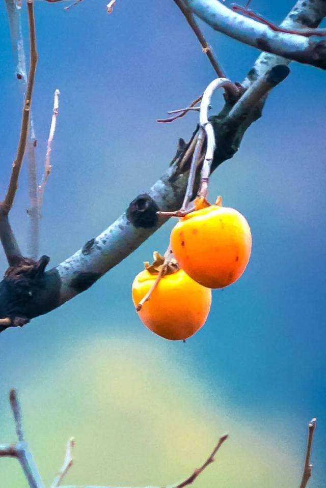 湛蓝晴空下,这点点柿红