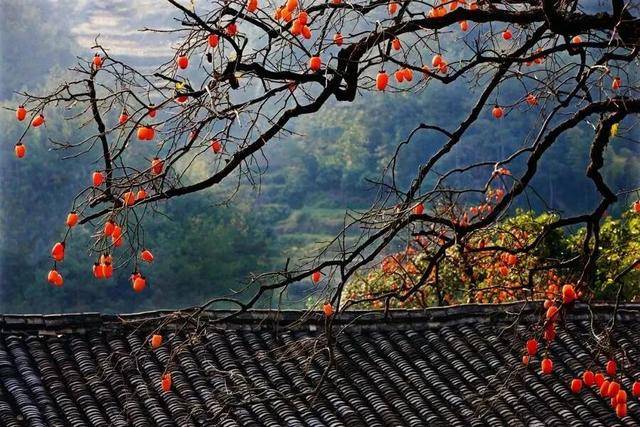 秋日被一颗颗金红的柿子巧妙点缀