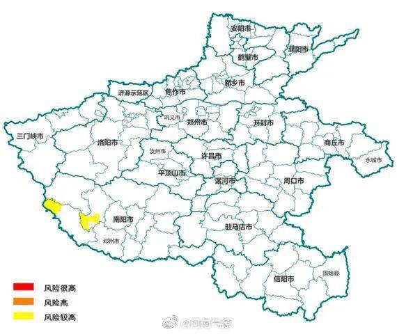 2025年10月19日20时至20日20时,河南省地质灾害气象风险预警达到黄色预警的区域为:南阳西部局部,发生地质灾害的风险较高。