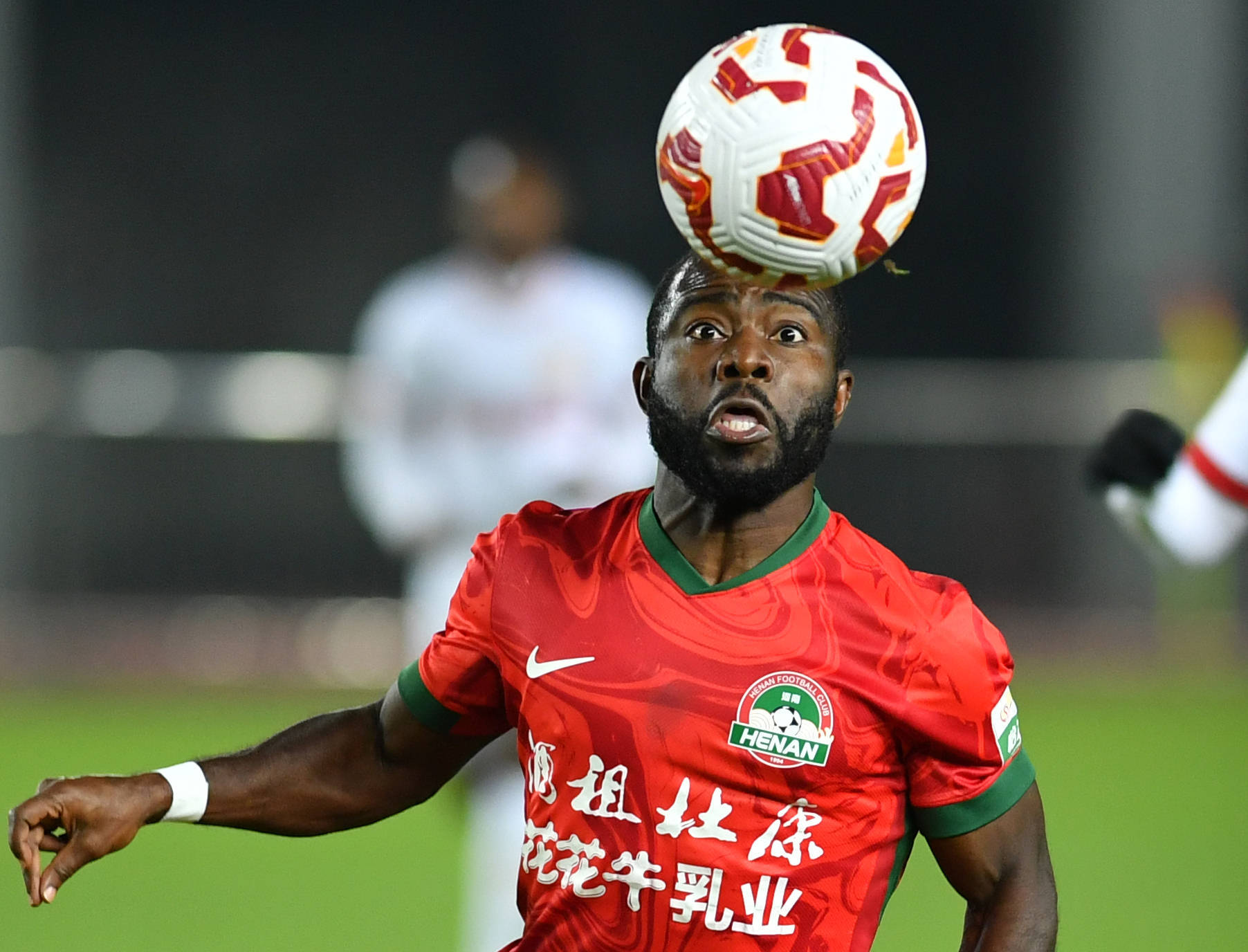10月19日,河南俱乐部酒祖杜康队球员阿奇姆彭在比赛中拼抢。 新华社记者 李嘉南 摄