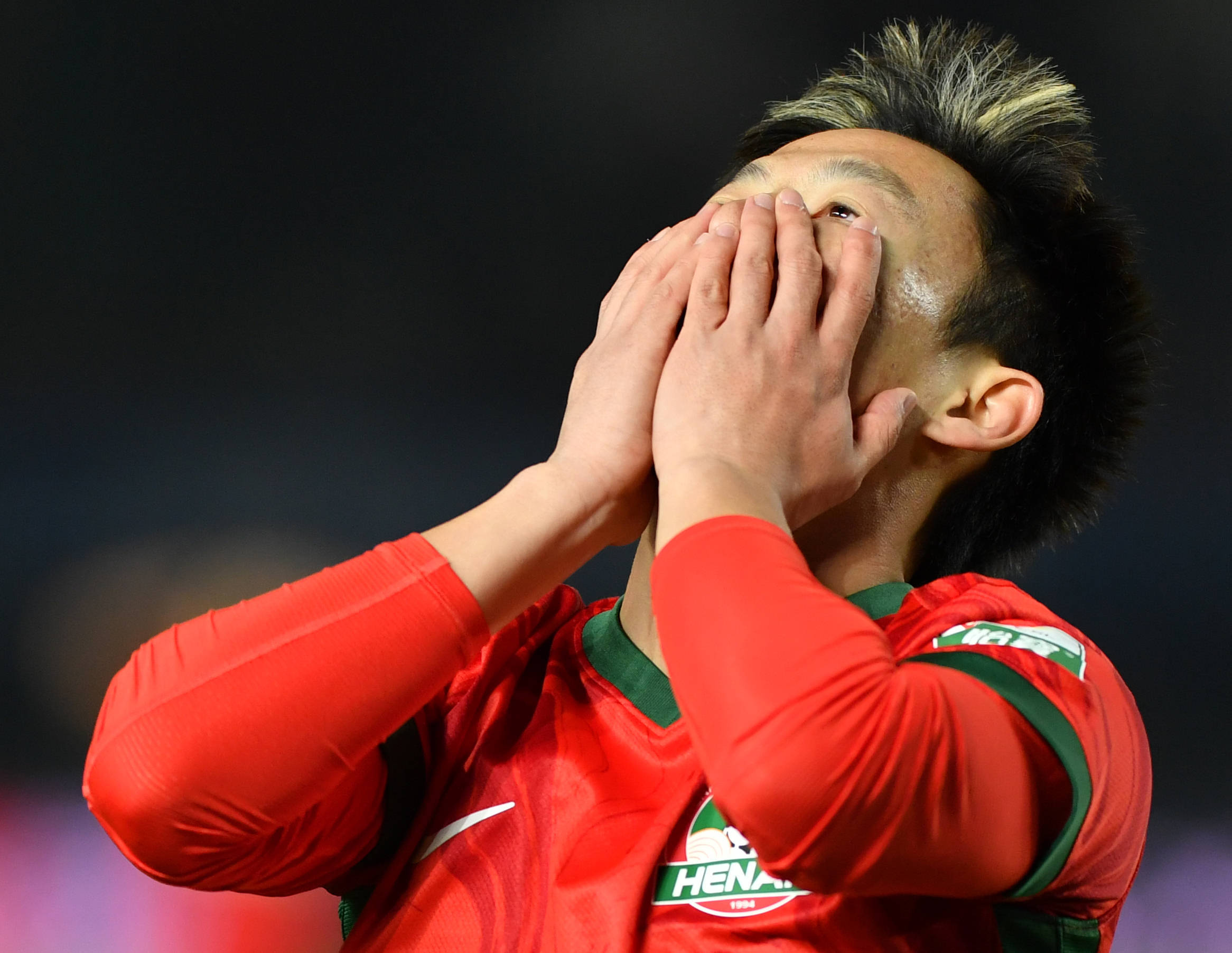 10月19日,河南俱乐部酒祖杜康队球员杨意林在错失良机后。 新华社记者 李嘉南 摄