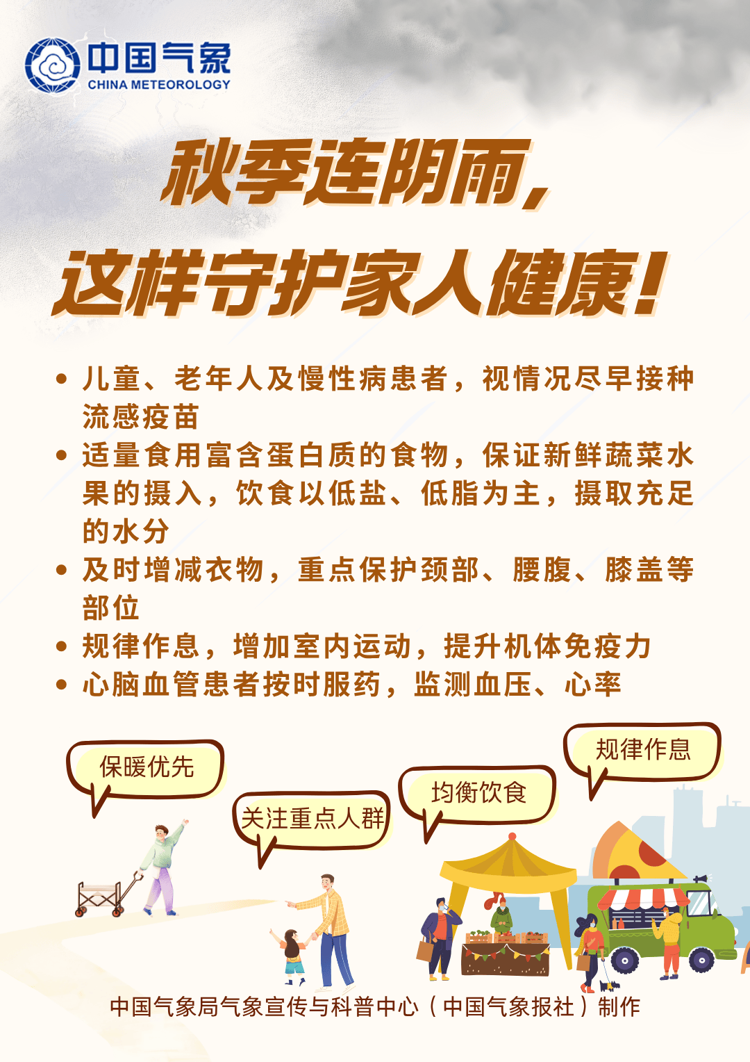 近期气温持续偏低,建议适时增添衣物,敏感人群加强流感、呼吸道和心脑血管等疾病的预防。