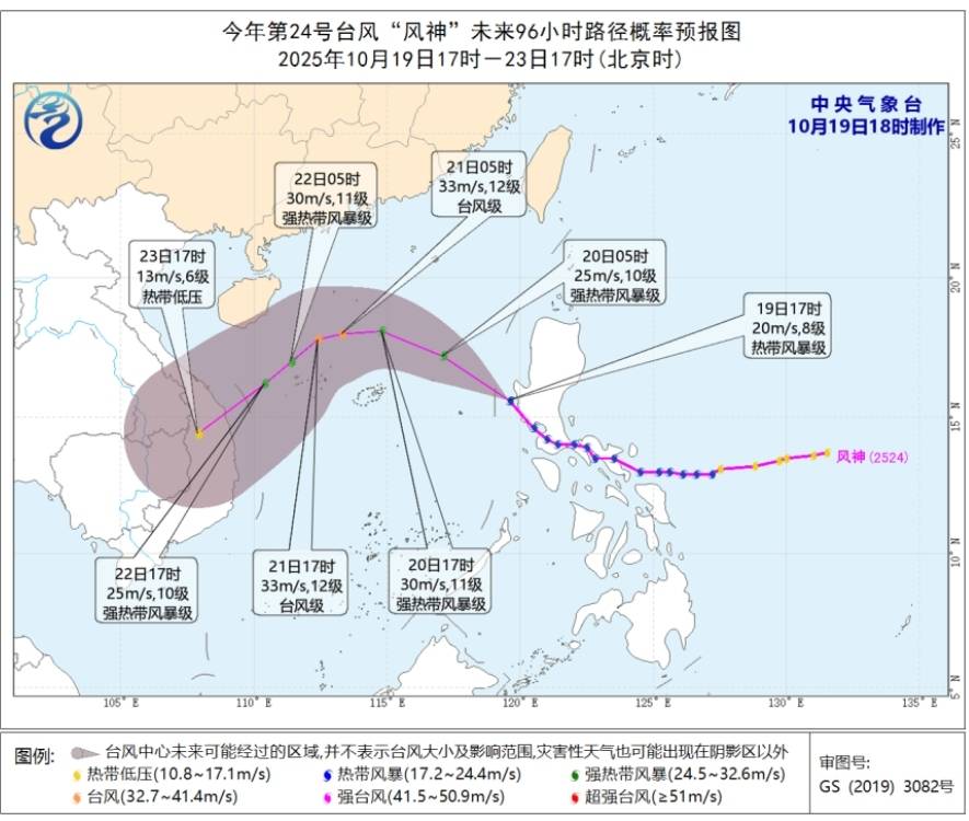 截至19日17时,今年第24号台风“风神”中心位于菲律宾吕宋岛西部近海,强度为热带风暴级。