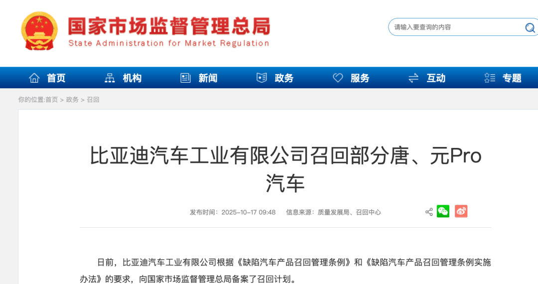 二、召回编号S2025M0166I:自即日起,召回2021年2月6日至2022年8月5日期间生产的部分元Pro纯电动汽车,共计71248辆。