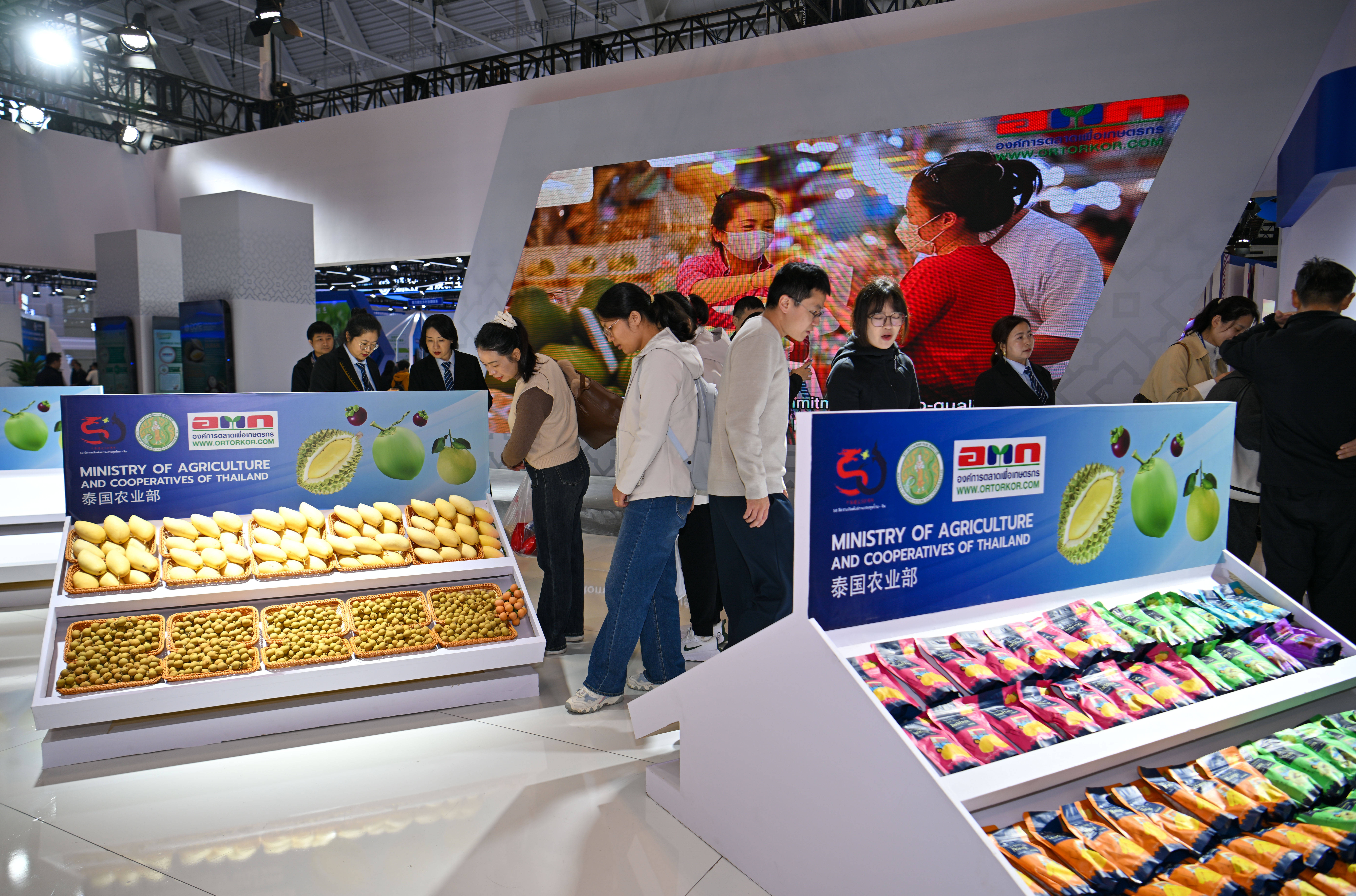 10月17日,观众在展会主宾国泰国展台参观。新华社记者 孙凡越 摄
