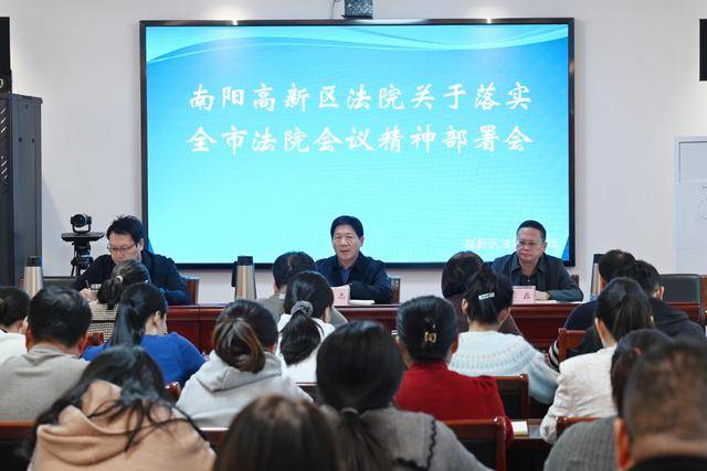 10月16日下午,南阳高新区法院召开会议,针对全市法院1—9月审判执行质效讲评会会议要求,研究部署落实举措,明确目标任务,凝聚奋起共识,力争以更加优异的成绩完成全年工作目标。分党组书记、院长何志主持并讲话,各审判业务团队全体干警参会。