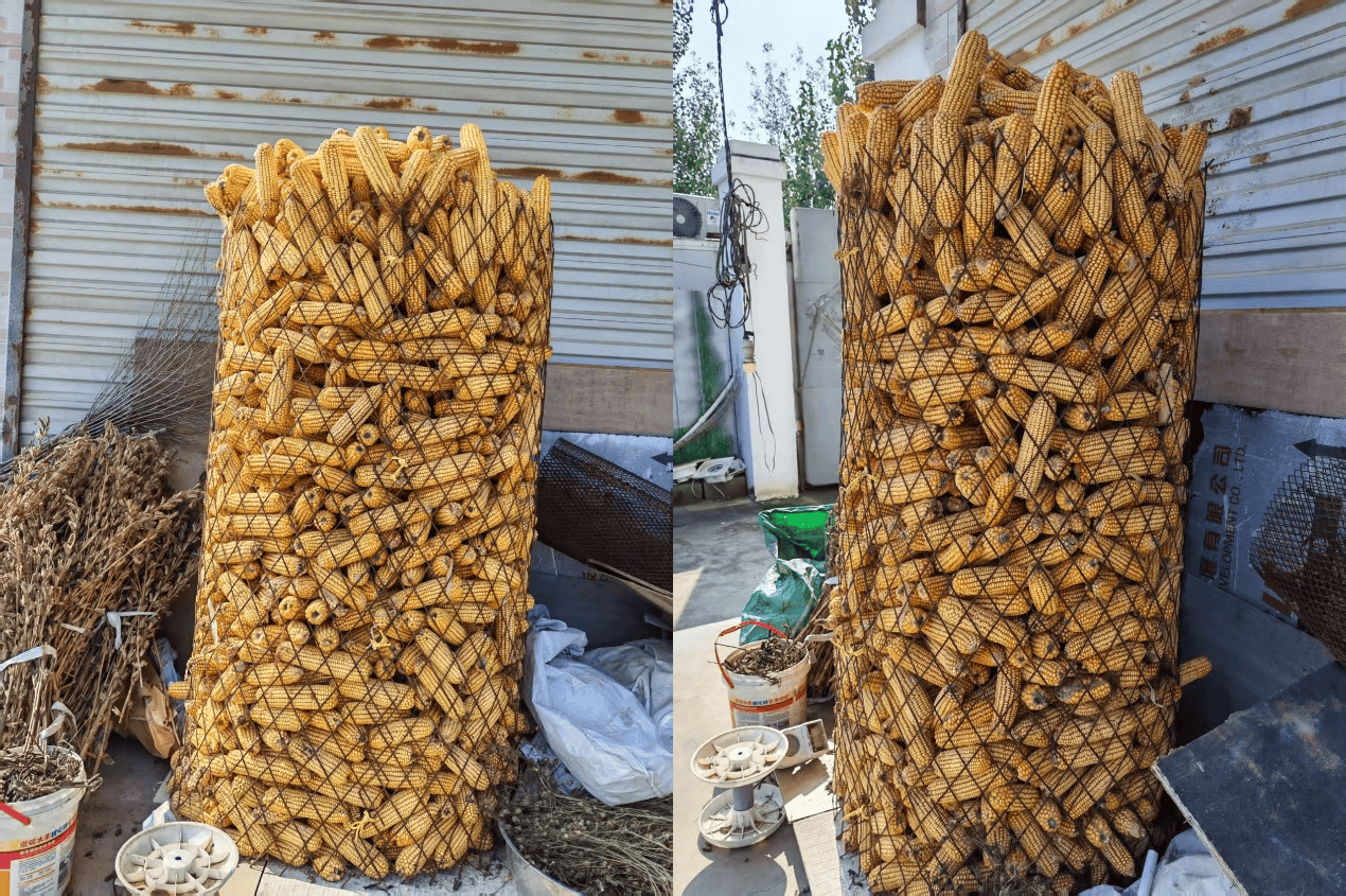 接下来,是晒玉米。这是一个有劳动门槛的活:用铁丝网搭建一个圆柱形的zhàn子(似乎没有一个官方名称),把玉米放入其中。这是千百年来劳动人民智慧的最佳呈现——既可以最大化的晒到玉米,又能占最小地方,还能在下雨时迅速给玉米遮雨。当把所有的玉米都放入其中时,这一年的玉米收获就算告一段落了。剩下的活就是给玉米脱粒,现代化设备就可以完成,以及最后的卖玉米。