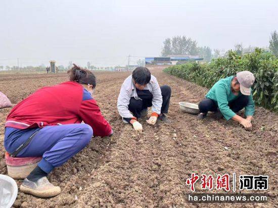中新网河南新闻10月20日电 “趁着不下雨,赶紧把蒜种上。”近日,在河南省开封市杞县葛岗镇花西村的地里,村民们趁着晴好天气,整地、选种、播种、覆膜,一系列工序有条不紊。