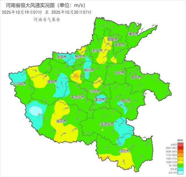 昨天7时到今天7时,我省中西部、南部出现小到中雨,三门峡局地大雨。西部、北部、南部部分县(市、区)出现6到8级大风,局地9级。