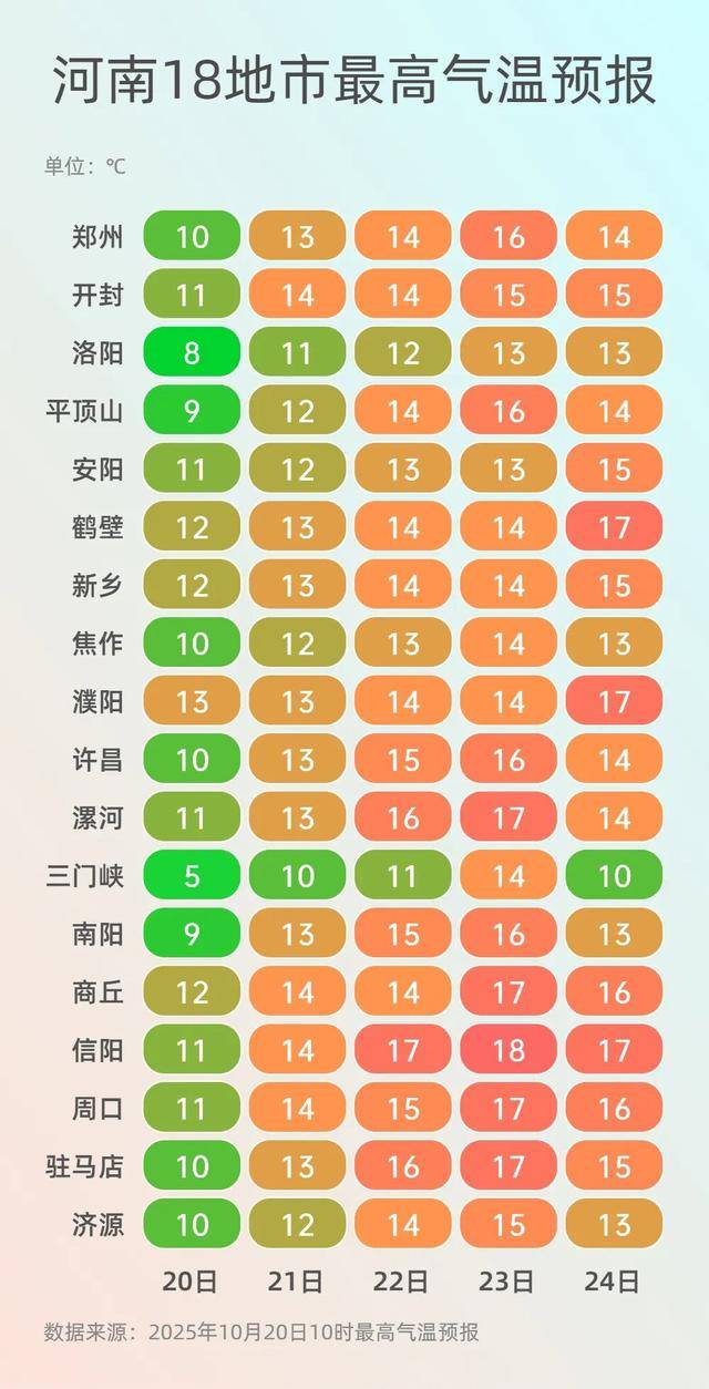 今天全省大部最高气温只有10度上下,后天将回暖至15度左右。但最低温度只有8度上下,早晚寒气十足,秋裤、羽绒服是时候出场了,注意保暖,谨防感冒。