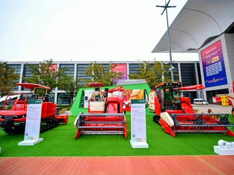 在产品展示区,从高大威猛的雷沃P8340 CVT拖拉机到小巧灵活的雷沃F4000果园机,由15台拖拉机、4台收获机、3台特种机械及3台农机具组成的强大产品阵容,构筑起覆盖覆盖“耕、种、管、收”成套农业装备解决方案。