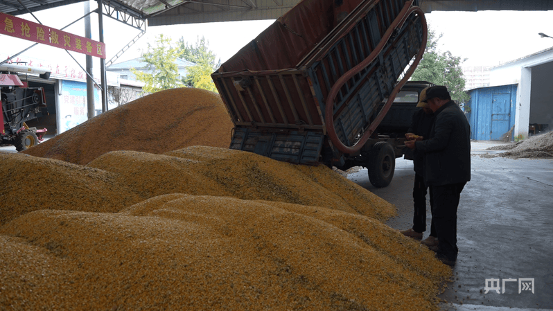 农户将粮食运送到粮食烘干点,及时烘干(央广网发 职福利 摄)