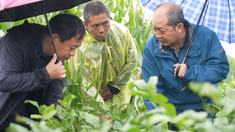 农技专家在大豆田里对农户进行“一对一”技术指导(央广网发 职福利 摄)