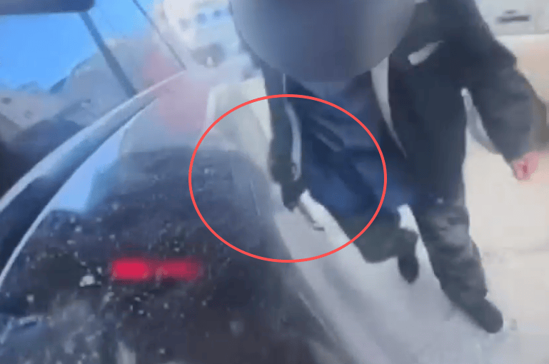 监控显示,当天下午13时39分,一名男子手持不明物品,一边划车一边不时朝着车内张望查看,甚至在离开时又再次顺手朝车身划去。