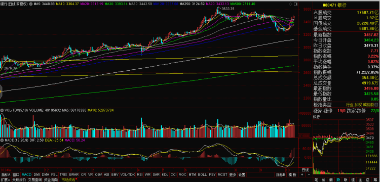 10月20日,银行板块继续上演“蛮牛式”行情。通达信数据显示,当天银行指数低开0.43%,随即快速跳水,最大跌幅达到1.54%,跌穿60天线、90天线。但10点06分后,银行指数逐步回升,而A股主要大盘却见顶回落。最终,银行指数反涨了0.22%,并在日K线上形成了强悍的“8连涨”组合。