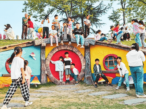 平顶山市在暖气管道和道路升级改造时,利用湛河河堤边坡地形,修建“精灵小屋”、滑梯等设施,将城市“边角空间”转化为全龄友好的休闲驿站。石潮 摄