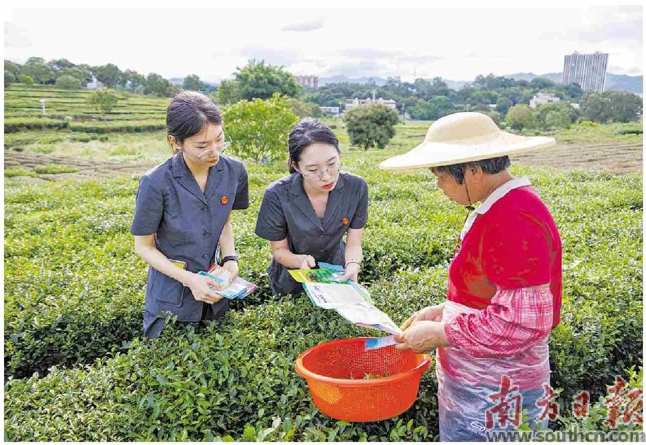 夏至前夕,博罗法院将普法课堂搬进了茶香弥漫的田间地头。法院干警化身“田间讲师”,围绕茶园生态保护、合同签订、借贷风险等茶产业发展中的关键法律问题,为茶农、茶商带来了一堂生动的法治课。活动现场,法官们用客家话等方言与群众亲切交流,在茶园入口处设置的“普法驿站”成为游客小憩、村民纳凉时学习法律知识的温馨一角。这种沉浸式普法,让法律知识变得通俗易懂,真正走进了群众心里。
