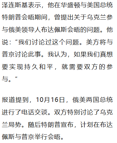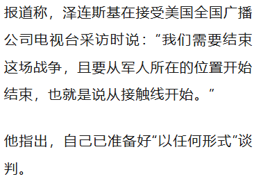 据俄新社19日报道,乌克兰总统泽连斯基表示,他准备以当前交战接触线为基础就领土问题谈判,并强调他同意开展任何形式的对话。