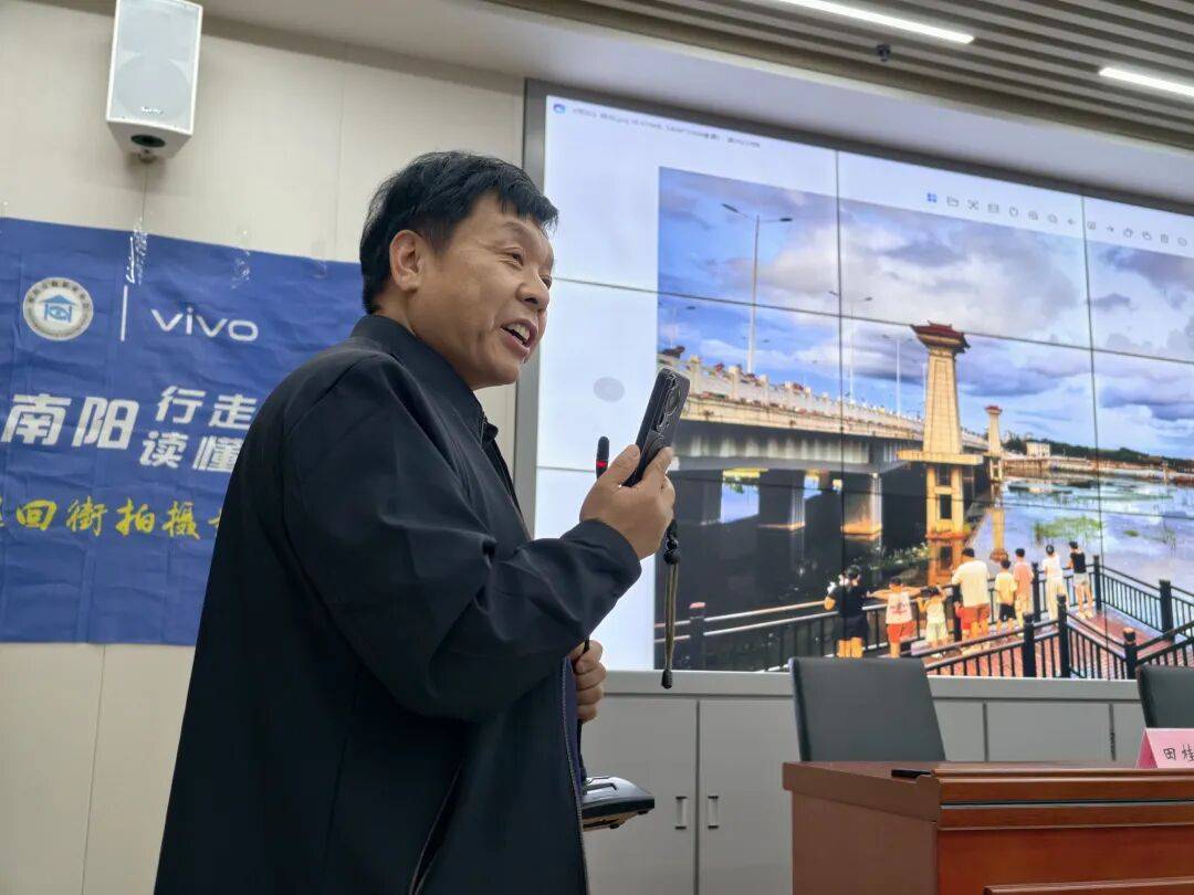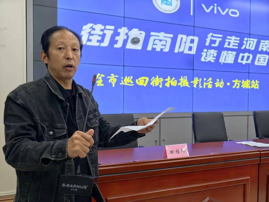 在10月18日上午的“街拍南阳”巡回活动方城站启动仪式上,郭运栓首先致辞,他介绍了方城县的基本情况、建设成就和县文联、县摄影家协会的工作亮点,对举办“街拍方城”活动给予高度评价,对全市各地的摄影师们来到方城开展街拍摄影活动表示热烈欢迎;田桂阳就维沃参与活动的相关情况进行了介绍;朱付新对举办全市巡回街拍活动的目的意义和流程环节进行阐释,对街拍(纪实)摄影的相关知识进行讲解,还对南阳市第五届“国庆一日”的获奖作品进行了赏析,勉励大家充分利用难得的机会,听取讲座、实操拍摄,用脑力、眼力、脚力、笔(镜)力,努力创作出精品佳作。