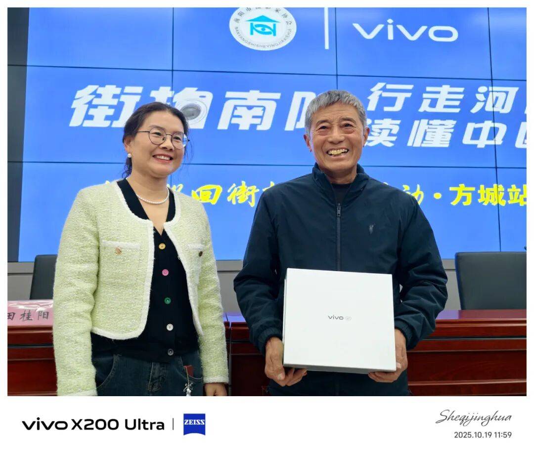 当天上午的讲座环节,由方城vivo公司终端部经理王慧为与会者带来了vivoX300的相关功能和手机摄影知识介绍,让大家感受到科技带来的实用便捷与美学意义。期间还进行了手机人像拍摄体验、手机保养服务和多轮抽奖活动。同时,还对方城县摄影家协会举办的“为我(vivo)方城喝彩”手机摄影第二赛季结果进行了公布,向获奖者颁发了奖品,对获奖作品进行展示点评。