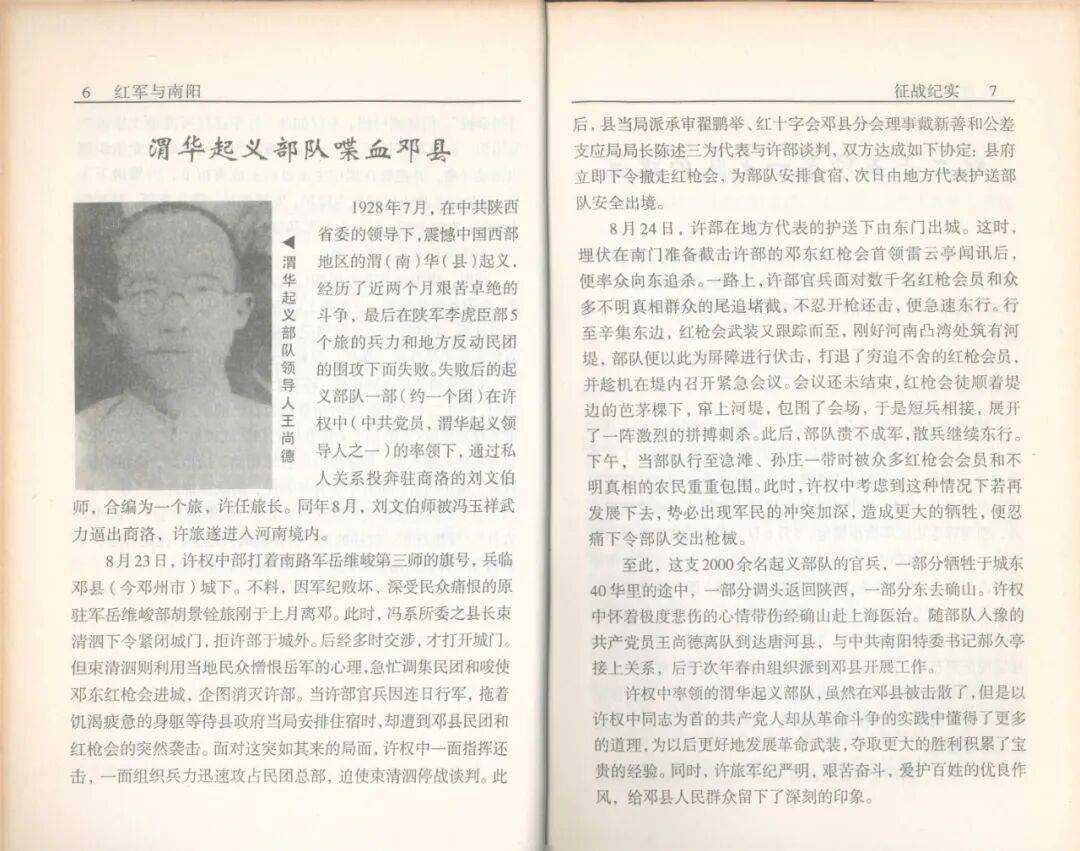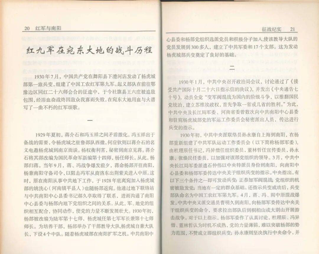 南阳是一片深深浸润着红军将士鲜血、永恒铭刻着红军英雄足迹的红色沃土。在风雷激荡的二十世纪二十至三十年代,渭华起义部队、红二十五师第一大队、红九军、红二十六师、红四方面军、红三军、红二十五军、红二十八军及鄂豫边红军游击队等九支英勇的革命武装力量,如璀璨星河般先后转战于南阳大地。这些队伍或初创于南阳这片热土,或在此历经浴血鏖战,或在万里长征的壮阔征程中穿行南阳。红星照耀下的钢铁洪流以雷霆万钧之势奔腾于宛属大地,留下了徐向前、贺龙、李先念、陈赓、程子华、吴焕先、徐海东、刘华清等老一辈无产阶级革命家坚实而铿锵的战斗足迹,深刻镌刻着九支红军队伍百折不挠、无畏艰险、气吞山河的伟岸光辉形象,更谱写出一曲曲感人至深、可歌可泣的军民鱼水情深的时代壮丽诗篇。